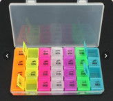 یک جعبه با ۲۸ بخش کوچک برای جداسازی قرصهای مصرف روزانه و با زمانبندی طراحی شده است.